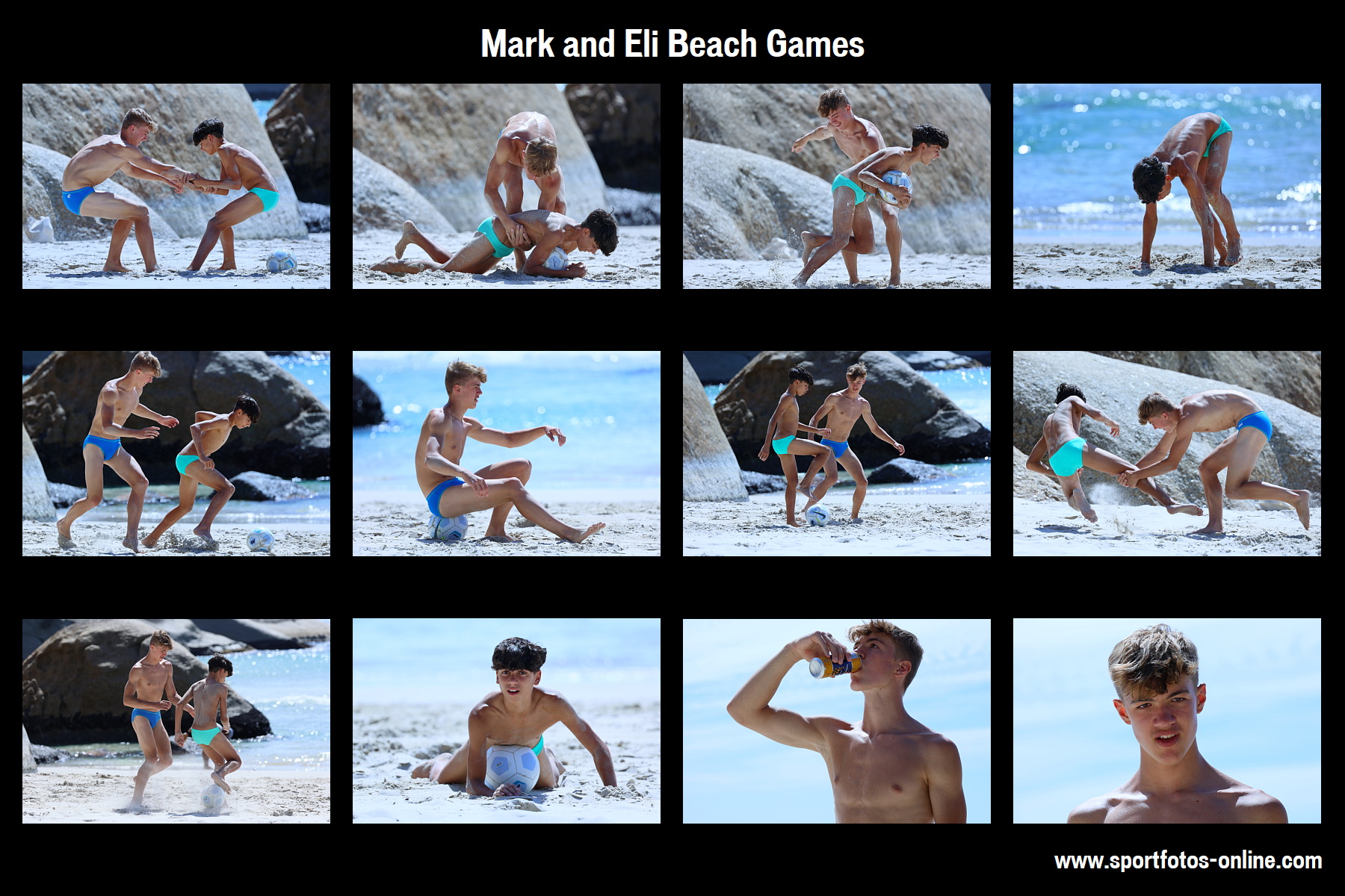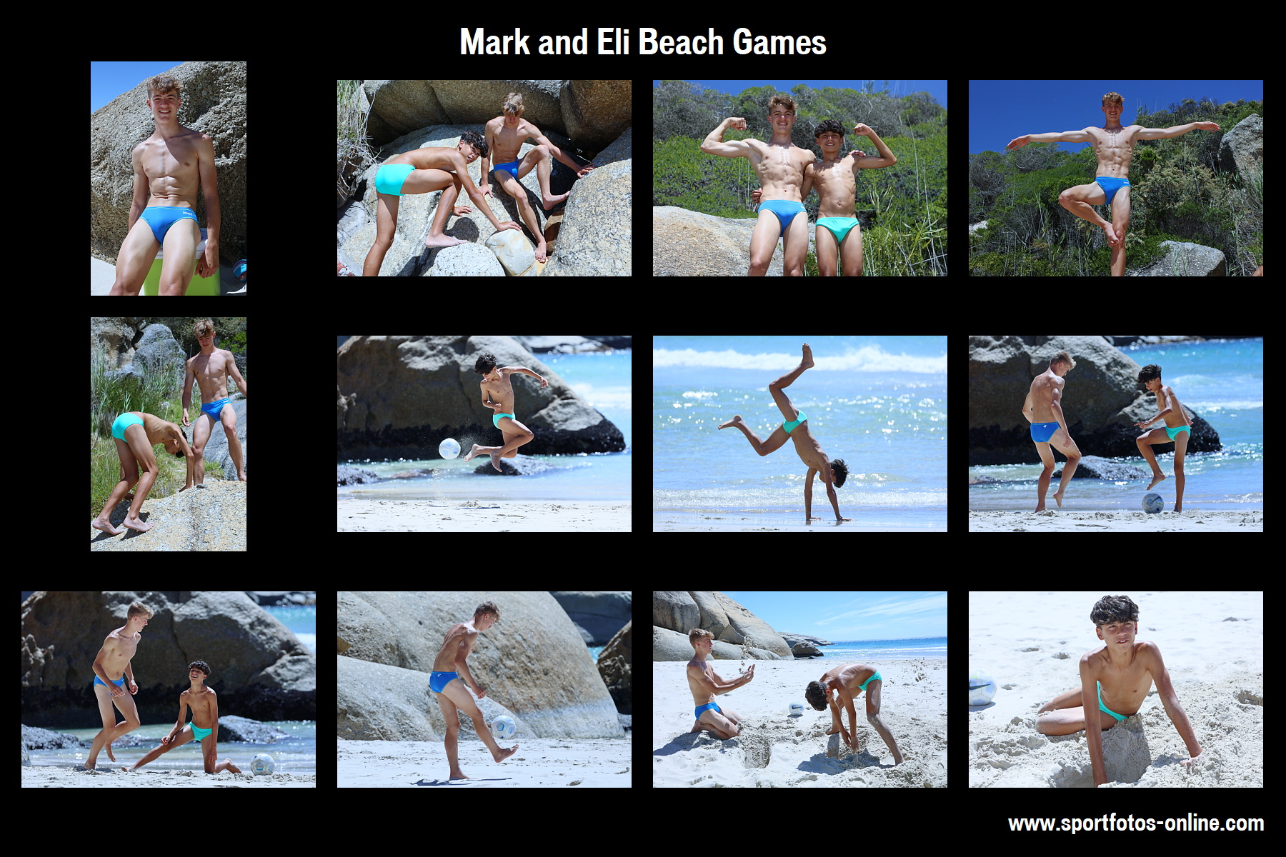 A masterpiece: Mark looks better than a Greek statue and contrasts well with Eli against a varied beach backdrop